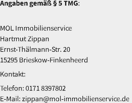 MOL Immobilienservice ist weder bereit noch verpflichtet, an Streitbeilegungsverfahren vor einer Verbraucherschlichtungsstelle teilzunehmen.